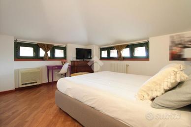 La scala interna conduce al piano superiore che si suddivide in tre camere da letto, comodo ripostiglio adibito a cabina armadio e secondo bagno padronale.