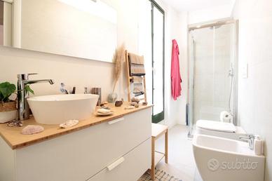 La soluzione è stata completamente ristrutturata nel 2021, presenta rifiniture moderne e vanta di molta luce naturale. È accessoriata con riscaldamento autonomo, serramenti in legno con doppi vetri, condizionatori in entrambi i piani, pavimenti in legno originale lavorato in tutta casa e gres porcellanato effetto pietra nei bagni.