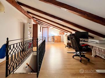 Una scala interna porta al secondo livello mansardato, ora composto da unico vano con letto e zona studio, secondo bagno ed accesso ad ampia soffitta con possibilità di creare una grande terrazza a vasca. Completa la proprietà un box auto doppio di pertinenza di ca 40mq, immediatamente sotto l'immobile a 59.000€ oltre al prezzo.