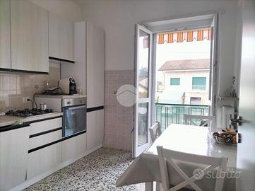 La cucina è abitabile, luminosa e ben areggiata grazie alla porta finestra che da accesso sul balcone pertinenziale.