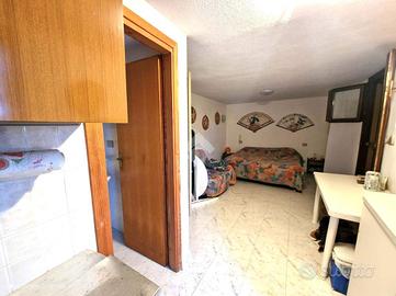 Altro punto a favore dell'immobile, un monolocale, ricavato dalla cantina, ideale come punto d'appoggio o investimento. Si tratta di un ambiente unico con angolo cottura e un bagno finestrato con box doccia.