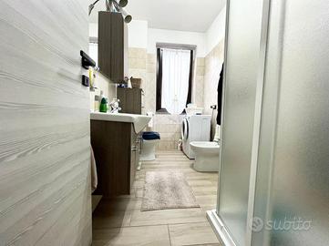Dall'ingresso si accede direttamente nella zona giorno composta da: soggiorno e cucina abitabile con affaccio sul balcone esposto a sud-est. Adiacente al soggiorno troviamo, il bagno finestrato dotato di piatto doccia.