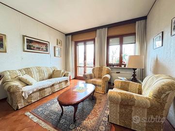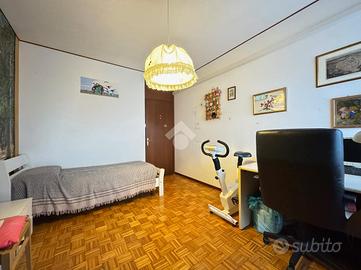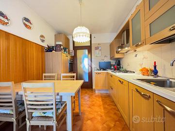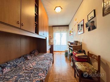 La zona giorno è costituita da soggiorno con terrazza e cucina abitabile separata, impreziosita da una veranda che affaccia sullo spazioso verde condominiale.