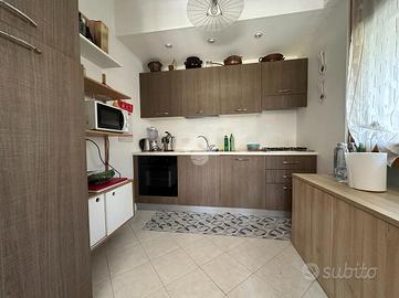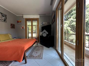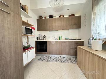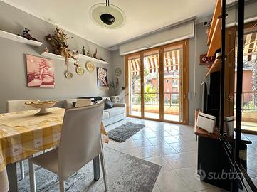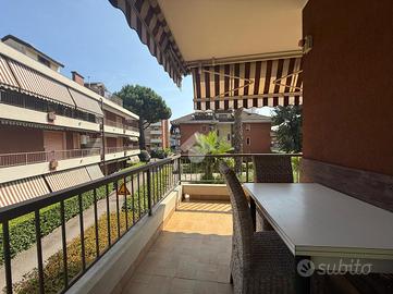 La proprietà è situata in un complesso residenziale immerso nel verde, completamente recintato e con accesso tramite cancello automatico. Pur essendo in una zona centrale e nelle immediate vicinanze di negozi e servizi, l'ambiente è tranquillo e riservato. All'interno del residence è presente una piscina a disposizione dei soli condomini. L'ingresso è nel corridoio da cui si accede a tutti gli ambienti. La zona giorno ha la cucina a vista, spaziosa e funzionale, perfetta per chi ama cucinare e vivere la casa con convivialità. La zona notte è composta da due camere da letto, entrambe di generose dimensioni. Il bagno, ben rifinito, è dotato di una comoda doccia. Elemento di valore è il grande terrazzo a giro, in parte verandato, uno spazio ideale per rilassarsi a prendere il sole, pranzare all'aperto o leggere un buon libro. Grazie all'esposizione su tre lati (sud, est e nord), l'appartamento è sempre luminoso e ben ventilato. L'appartamento ha a disposizione una cantina al piano seminterrato. E' poi possibile acquistare a parte un garage di 50 mq al piano seminterrato. L'appartamento, che unisce spazio, comodità e tranquillità, è ideale sia come prima casa sia come casa vacanza.