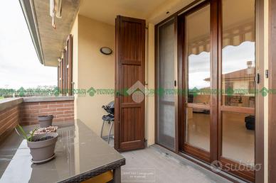 L'agenzia Tecnocasa di Crespellano e Bazzano, sita in Via Provinciale n°240 a Crespellano di Valsamoggia, PROPONE IN VENDITA A CALCARA VIA MAZZINI 138 B APPARTAMENTO ULTIMO PIANO, DISPOSTO SU 2 LIVELLI. L'immobile si trova all'interno di un condominio recintato, accessibile solo ai residenti con vista sui terreni agricoli, disposto al secondo e ultimo piano servito da ascensore condominiale, con sovrastante sottotetto servito da suggestiva scala interna. Al piano 2° troviamo l'ingresso sulla zona soggiorno con terrazzo abitabile, cucina separata, disimpegno, 2 camere da letto con altri 2 terrazzi e bagno; al piano superiore sottotetto, collegato da scala interna, è presente una zona utilizzata a camera e bagno. Al piano interrato è presente 1 autorimessa ed una cantina. Di fianco all'accesso pedonale vi è un posto auto di proprietà. L'appartamento si presenta in ottimo stato di manutenzione, con scuri in legno alle finestre, zanzariere, terrazzo della zona giorno abitabile. Le finiture sono in ottimo stato, i pavimenti sono in gress simil travertino nella zona giorno e in parquet nelle camere, bagni in gres porcellanato. Si tratta di una soluzione unica nel suo genere. Per maggiori informazioni e per visionare l'immobile potete contattarci al numero