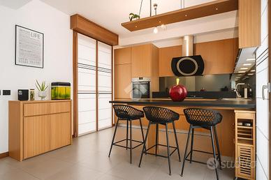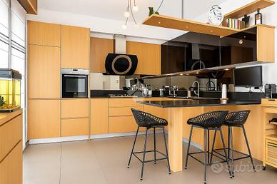 * la zona giorno si apre su un accogliente living con cucina a vista, ideale per momenti conviviali;