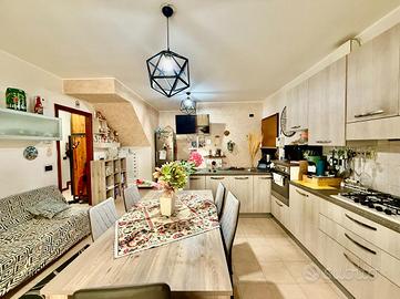 L'immobile si sviluppa su due livelli ed è composto al piano d'ingresso da soggiorno con angolo cottura con terrazzo di riferimento, due camere di cui una matrimoniale e una doppia e un bagno finestrato con doccia.