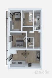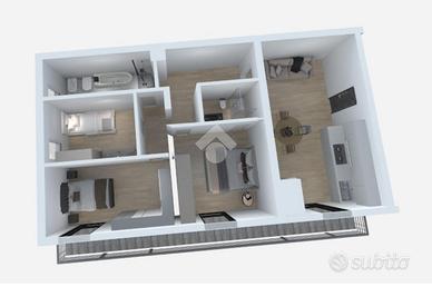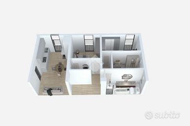 Appartamento di 95 mq pronto da vivere con affaccio sul verde. In una zona tranquilla e a pochi passi dal corso principale di Vejano, proponiamo in vendita un luminoso appartamento al secondo piano, caratterizzato da spazi ampi e ben distribuiti e da un piacevole affaccio sul verde. L'ingresso conduce a una zona giorno open accogliente, composta da soggiorno con cucina a vista, camino tradizionale e idro stufa a pellet, che contribuisce al riscaldamento dell'abitazione creando un'atmosfera calda e conviviale. Dalla zona giorno si accede inoltre al balcone, con vista aperta sul verde circostante. La zona notte è composta da due camere matrimoniali, di cui una con bagno en suite, una cameretta e un bagno finestrato completo di doccia e vasca. A completare la proprietà troviamo una porzione di cantina e una parte di terreno retrostante l'immobile, ideale come orto o spazio esterno da vivere. Una soluzione ideale per chi cerca comfort, tranquillità e metrature generose, senza rinunciare alla vicinanza al centro e ai principali servizi del paese.