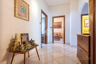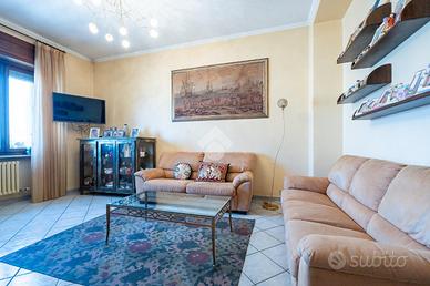 La palazzina è ubicata nel pieno centro della Città, in una posizione ideale per la presenza in prossimità di tutti i servizi ed a qualche centinaio di metri dall'ingresso della tangenziale nord. La sua costruzione risale alla fine degli anni '50 e si presenta in buono stato sia per quanto riguarda le facciate che per quanto riguarda le altre parti comuni. Lo stabile non è dotato di ascensore. L'appartamento proposto è stato completamente ristrutturato nei primi degli anni 2000, utilizzando materiali di ottima fattura e si presenta attualmente in condizioni veramente impeccabili. Sono stati installati anche i vetri camera sui serramenti in legno già esistenti. La distribuzione degli ambienti, tutti di generose dimensioni, è quella classica del periodo della costruzione, con l'ampio ingresso che funge da disimpegno. La cucina è perfettamente abitabile, anche grazie all'angolo cottura che ne completa e migliora la fruibilità e dà, inoltre, accesso al balcone lato cortile, accessoriato con tende estive/invernali e con un armadio su misura utilizzabile come ripostiglio. L'adiacente soggiorno, molto luminoso, potrebbe essere utilizzato, volendo, anche come terza camera da letto, in aggiunta alla matrimoniale, con balcone ed a quella dei ragazzi. Il bagno è accessoriato con il capiente box doccia. L'impianto di riscaldamento è autonomo e la caldaia è posizionata nel balcone lato cortile. L'immobile è accessoriato anche da due climatizzatori, posti nelle due camere da letto, che ne garantiscono un adeguato raffrescamento. Completa la proprietà la capiente cantina al piano interrato. Possibilità, infine, di acquistare anche il Box Auto, situato nel cortile condominiale.