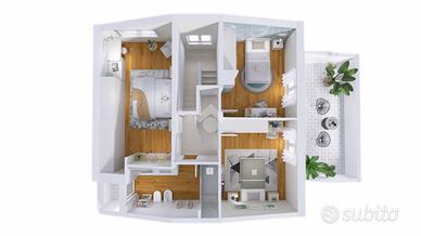 Salendo al primo piano, troviamo tre camere da letto spaziose tutte matrimoniali ben illuminate con due terrazzi, perfette per ospitare una famiglia. Il piano è arricchito da un secondo bagno, moderno e ben rifinito, ideale per godersi la vista e rilassarsi.