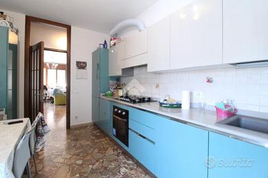 La zona giorno si distingue per un luminoso soggiorno di generose dimensioni, servito da un ampio terrazzo, e da una spaziosa cucina abitabile, anch'essa corredata da un grazioso balcone. La zona notte, ben separata dalla zona giorno, è composta da tre camere da letto, una matrimoniale e due ampie singole, oltre a un bagno finestrato con vasca e a un comodo ripostiglio.