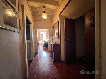 Nel cuore pulsante del centro storico di Veroli, a pochi passi da Piazza Bisleti, proponiamo in vendita due splendidi appartamenti situati in un affascinante stabile che offre comodità per il parcheggio e meravigliosa vista sulla Chiesa di San Paolo. Al piano terra, troverete un appartamento versatile, ideale come spazio abitativo supplementare, casa estiva o accogliente rifugio per gli ospiti. La disposizione degli ambienti è accogliente e funzionale, con un corridoio che conduce da un lato a una cucina ben attrezzata, a un salottino intimo e a un bagno, mentre dall'altro lato si affaccia una graziosa camera matrimoniale con cabina armadio. I soffitti a volta donano un tocco di eleganza e luminosità all'ambiente, mentre un accesso diretto al giardino panoramico arricchisce ulteriormente questa proprietà, offrendo un'oasi di relax in una location storica. Salendo al primo piano tramite la scala condominiale, troverete l'appartamento principale che si distingue per il suo ampissimo spazio. Composto da due camere da letto, due ampi saloni, una cucina e un bagno, questo appartamento vanta soffitti a cassettoni che evocano un'atmosfera classica e raffinata. Inoltre, il grazioso terrazzino panoramico rappresenta un vero e proprio angolo di paradiso, dove è possibile trascorrere momenti di tranquillità e ammirare il panorama circostante. Se desiderate, il terrazzino può essere collegato al giardino dell'appartamento sottostante, creando così uno spazio esterno unico e versatile. Questi appartamenti rappresentano un'ottima opportunità per chi cerca una soluzione abitativa nel centro storico di Veroli, combinando charme, comodità e potenzialità. Non perdete l'occasione di scoprire queste due perle nel cuore della città! Entrambi gli appartamenti si presentano in buono stato, pronti per essere abitati senza interventi significativi. La posizione strategica, con parcheggio nelle immediate vicinanze, un giardino privato e un terrazzo, sono caratteristiche rare da trovare