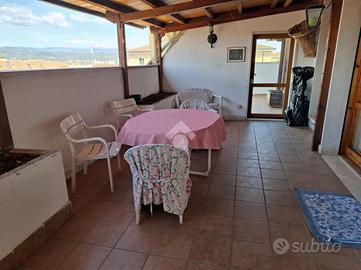 GOLOSINE. Interessante soluzione di appartamento disposto su due livelli, inserito in una palazzina di otto unità. L'immobile si compone di una sala con camino, una grande cucina abitabile, doppi servizi, due camere da letto matrimoniali, ripostiglio, due splendide terrazze panoramiche delle quali una coperta di 24 metri quadrati e una scoperta di 16 metri quadrati, dove è presente un secondo camino. L'abitazione dispone di ulteriori tre balconi. Al piano interrato troviamo due vani di cantina e un comodo posto auto coperto di 20 metri quadrati, di proprietà. La palazzina si trova in posizione servita e tranquilla.