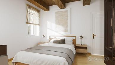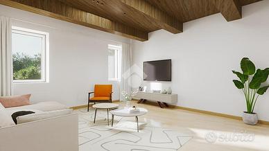 POIANO - PROSSIMA REALIZZAZIONE IN CORTE PRIVATA Consegna prevista: FINE 2026 VANTAGGIO FISCALE - BONUS ACQUISTO IMMOBILE RISTRUTTURATO. L'acquisto di questa unità come PRIMA CASA consente di beneficiare di una detrazione IRPEF, ripartita in 10 rate annuali di pari importo. IN PARTICOLARE PER QUESTO APPARTAMENTO PRIMA CASA DETRAZIONE DI EURO 38.000 circa. In un contesto esclusivo e immerso nel verde, a soli 6 km a nord-est dal centro di Verona, tra le colline, nasce un nuovo intervento di completa ristrutturazione all'interno di una splendida corte storica, dove sorgeranno 10 nuove unità abitative moderne e funzionali. UNITA' 8 - PIANO SECONDO - 110 mq La soluzione abitativa proposta si sviluppa al piano secondo ed è composta da soggiorno, cucina, due camere da letto, doppi servizi, un balcone, posto auto scoperto. CAPITOLATO TECNICO - FINITURE E DOTAZIONI Pavimenti: Gres porcellanato di prima scelta, in tinta unica a scelta da campionario visibile presso rivenditore autorizzato. In corrispondenza delle porte interne verranno installate piattine in ottone o acciaio per assorbire le dilatazioni del materiale Battiscopa in legno verniciato bianco. Rivestimenti bagni: Gres porcellanato in tinta unica. Altezza posa: 1,20 m per le pareti generali, 2,40 m per le pareti doccia Serramenti esterni: In PVC bianco con apertura a battente/ribalta e microventilazione di serie. Telaio da 70 mm con apertura verso l'interno. Zanzariere già installate all'esterno di ogni serramento. Scuri: In alluminio a pacchetto, stile "alla vicentina", colore a scelta. Porte interne: Modello cieco, battente o scorrevole, finitura laminato bianco liscio. Maniglie in lega di alluminio effetto cromo satinato. Porta d'ingresso blindata classe 3, completa di spioncino e limitatore di apertura. Impianto di riscaldamento e raffrescamento: Autonomo a pavimento. Caldaia esterna murale a condensazione marca Ariston. Predisposizione per impianto di climatizzazione: attacchi, scatola ispezio