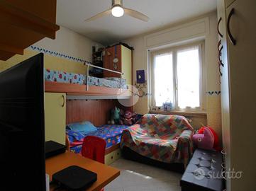 La zona notte comprnde due camere da letto, una matrimoniale e una doppia, oltre a un bagno finestrato completo di vasca e doccia.