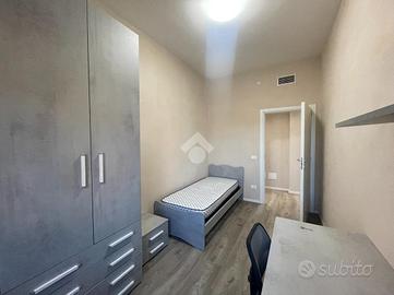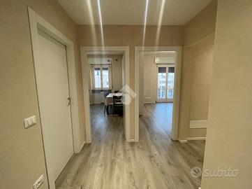 Abbiamo subito una zona di ingresso che ospita un comodo e pratico ripostiglio. Da qui accediamo alla cucina abitabile e ad un primo locale con balcone attualmente adibito a camera, ma utilizzabile anche come soggiorno. Un corridoio ci porta poi alla zona notte composta da una camera singola, una camera matrimoniale con un secondo balcone e ai due servizi con doccia, di cui uno finestrato.