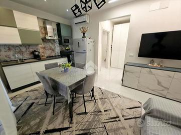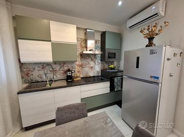 GOLOSINE. Completamente ristrutturato nel 2024, in ottima classe energetica, luminoso appartamento al terzo piano dotato di tre stanze da letto, tre bagni, tutti finestrati, perfettamente idoneo all'utilizzo per locazioni turistiche e transitorie. L'immobile si compone di: ingresso, sala con cucina a vista, tre camere da letto, ognuna delle quali servita da bagno. Tutti i bagni dispongono di doccia. Tre balconi. Cantina al piano interrato. Ampio parcheggio pubblico antistante all'edificio. Climatizzazione con quattro split e riscaldamento autonomo con pompa di calore. Tutte le tapparelle sono motorizzate elettricamente. Isolamento realizzato sulle pareti perimetrali con cappotto termico interno. Impianti con certificazioni di conformità. L'appartamento viene venduto completamente arredato a nuovo.