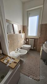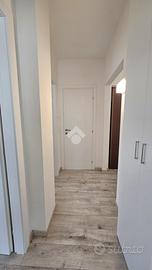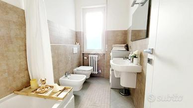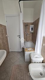 A completare gli spazi interni del bene e' presente un ripostiglio, il servizio con vasca e sanitari sospesi e un ampio armadio a muro dove e' posizionata la lavatrice.