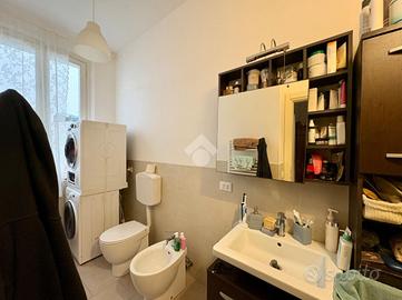 Accedendo dal vano scala comune a soli tre appartamenti, accediamo all'abitazione posta al primo piano.