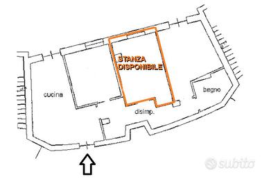 L'appartamento si trova al piano terra ed è composto da tre camere (una singola e due matrimoniali). Le zone comuni comprendono zona giorno con cucina e bagno, condivise con altri due inquilini studenti.
