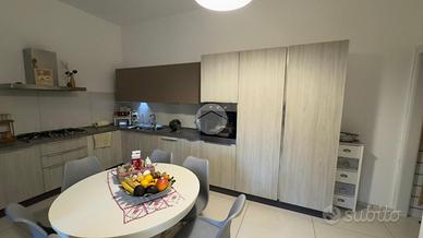 Dalla zona giorno, sulla destra, si accede alla cucina abitabile, anch'essa dotata di portafinestra con uscita diretta sul giardino.
