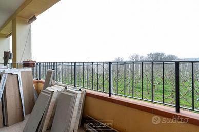 Il balcone rappresenta un piacevole spazio esterno per momenti di relax, affacciato su una zona rurale che offre tranquillità e contatto con la natura, pur rimanendo a breve distanza dalla città.