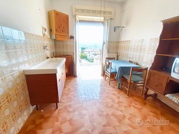 L'alloggio, da personalizzare e libero su tre lati, è composto da: ingresso, cucina abitabile, soggiorno, due camere da letto, bagno finestrato con vasca, dispensa e due balconi che garantiscono una gradevole esposizione durante tutto l'arco della giornata ed una vista panoramica sulla vallata.