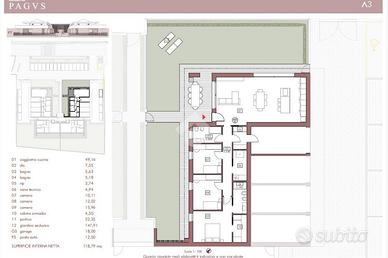La soluzione si contraddistingue per il giardino ad uso esclusivo di circa 150mq.
