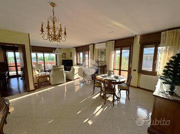 La zona notte è impreziosita da pavimenti in legno e comprende tre spaziose camere matrimoniali, uno studio riservato, uno sgabuzzino utile per organizzare al meglio gli spazi, e due bagni, di cui uno dotato di doccia idromassaggio per un tocco di benessere quotidiano. Ogni ambiente è climatizzato con split installati nel 2021, garantendo una temperatura ideale in ogni stagione.