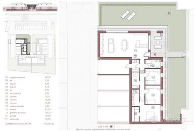 Dispone, inoltre, di garage di 18mq e posto auto esterno privato di 12,50mq, entrambi a piano terra.