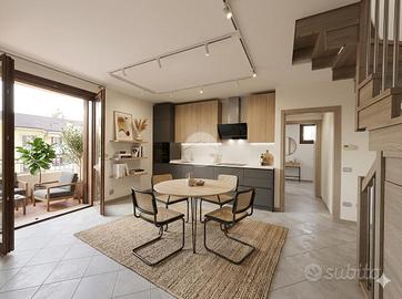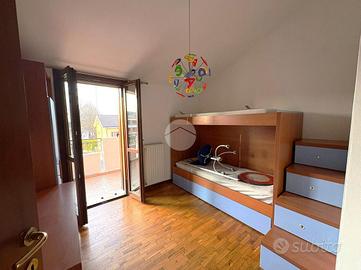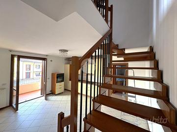 PERAROLO- Appartamento duplex al primo ed ultimo piano di una palazzina del 2003. L'immobile è composto da ingresso, soggiorno e cucina insieme, ma con possibilità di dividere i due spazi, serviti inoltre da poggiolo e un primo bagno finestrato dotato di vasca. Salendo, troviamo il reparto notte con due camere da letto, una matrimoniale ed una singola, servite da un unico poggiolo, un secondo servizio dotato di velux e doccia. Inoltre, come spazioe esterno dispone di un grande terrazzo abitabile. A completare la proprietà, al piano interrato troviamo il garage triplo.