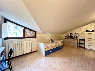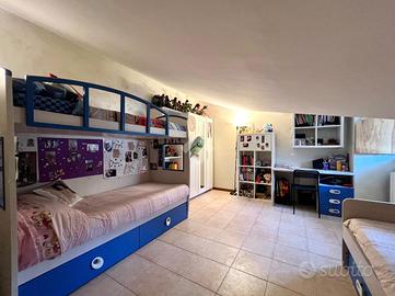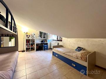 Una scala interna in muratura conduce al locale mansarda adibita a zona notte, composto da una spaziosa camera matrimoniale e due camerette confortevoli, perfette per una famiglia o da adibire a studio/stanza hobby. Sullo stesso piano è presente anche una pratica lavanderia che aggiunge comodità alla vita quotidiana.
