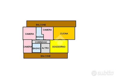 La soluzione ci accoglie nel grande soggiorno con camino e vista sulla cucina semiabitabile; l'appartamento dispone di due ampi balconi su entrambi i lati, garantendo così grande luminosità agli ambienti.