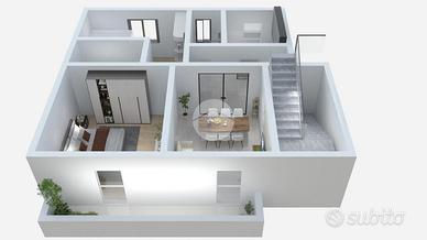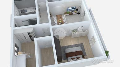 L'ingresso direttamente su corridoio rende comodo l'accesso a tutte le stanze della casa, quali cucina semi-abitabile, ampio soggiorno, bagno e camera da letto con cabina armadio. Dal soggiorno è possibile accede ad un ulteriore ampio vano.