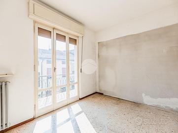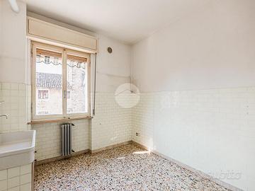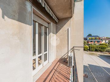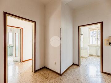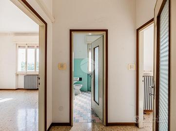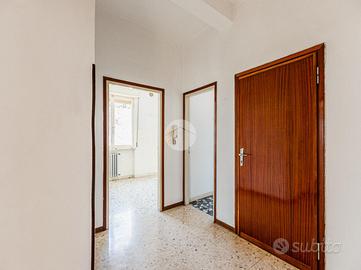 L'appartamento, che gode di una buona luminosità, si compone di: ingresso nel disimpegno, cucina separata, soggiorno, un comodo servizio finestrato e due spaziose camere da letto. Completa la proprietà un balcone.