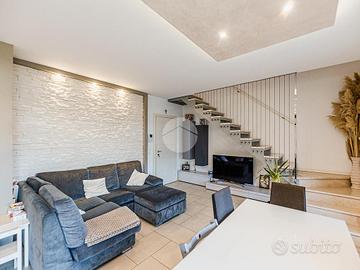 VILLAFRANCA - FRAZIONE DI QUADERNI In tranquillo contesto residenziale di recente costruzione, comodo ai principali servizi del paese, proponiamo in vendita appartamento disposto su due livelli con ampio terrazzo e garage. L'immobile, posto al piano primo, si apre su una luminosa zona living open space con accesso diretto ad un ampio terrazzo di circa 14 mq, ideale per momenti di relax, convivialità o per pranzi e cene all'aperto. Attraverso un disimpegno accediamo alla zona notte composta da un servizio finestrato, una camera da letto matrimoniale, una camera singola con accesso ad un ulteriore balcone ed un pratico ripostiglio. Una comoda e scenica scala interna conduce al piano superiore dove troviamo altri due locali versatili, con la possibilità di ricavare ulteriori due camere matrimoniali oltre ad un secondo servizio. L'immobile, edificato nel 2012, si presenta in ottimo stato manutentivo ed è inserito in uno stabile in classe energetica B, garanzia di buon comfort abitativo e contenimento dei consumi. Tra le dotazioni degne di nota troviamo, tapparelle domotizzate e la presenza, proprio di fronte al contesto, di un ampio parco comunale attrezzato, soluzione particolarmente apprezzabile per famiglie con bambini o per chi desidera uno spazio verde a pochi passi da casa. La soluzione rappresenta un'interessante opportunità per chi è alla ricerca di un'abitazione recente, funzionale e inserita in un contesto residenziale curato. Completa la proprietà un ampio garage di 20 mq al piano interrato. Per maggiori informazioni contattare la nostra agenzia immobiliare. Le informazinoi sopra riportate non costituiscono elemento contrattuale.