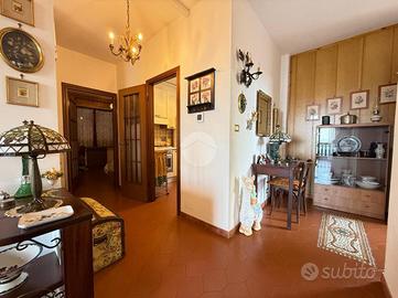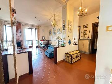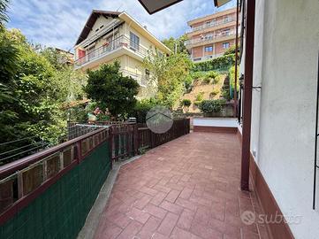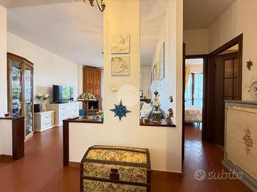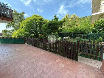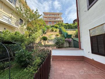 Completano la proprietà l'ampio terrazzo con vista panoramica ed il giardino privato, in parte pianeggiante, ed in parte terrazzato, ad uso orto.