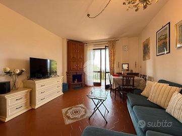 L'alloggio è composto da ingresso, soggiorno con camino a legna, cucinino, due camere da letto e bagno con vasca.