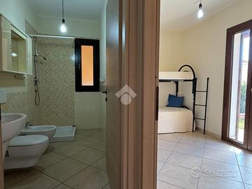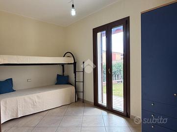 Villasimius: all'interno del Condominio Agorà, noto per il contesto curato, impreziosito dall' utilizzo di materiali locali di qualità, proponiamo in vendita un appartamento al piano terra, unico nel suo genere, caratterizzato da ampi spazi esterni e luminosa zona giorno. In ingresso il living, in open space, presenta una cucina a vista con uscita diretta sulla veranda frontale e, in virtù di una distribuzione ottimale degli ambienti, facilmente arredabile. Le aperture verso l'esterno permettono un piacevole collegamento con il giardino privato, che offre la possibilità di trascorrere tempo all'aperto e di creare una zona pranzo o relax secondo le proprie esigenze. Un comodo disimpegno separa la zona giorno dalla zona notte, garantendo maggiore privacy. L' area notte comprende tre camere finestrate, tra cui una matrimoniale con veranda e verde privato, una seconda camera doppia luminosa e direttamente collegate al giardino frontale, e infine la terza sempre dotata di porta finestra con uscita sul giardino. L'abitazione è completa di due bagni di cui uno finestrato, arioso e particolarmente luminoso, e un secondo bagno non finestrato, moderno e perfettamente organizzato negli spazi, pensato per offrire la massima praticità. Si tratta di una soluzione comoda e ben strutturata, adatta come abitazione principale sia come casa per le vacanze, inserita in un contesto residenziale, apprezzato per la posizione e la tranquillità. Contattaci per maggiori informazioni e per fissare un appuntamento!