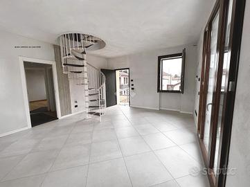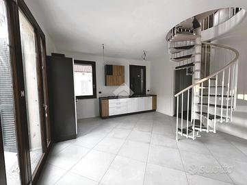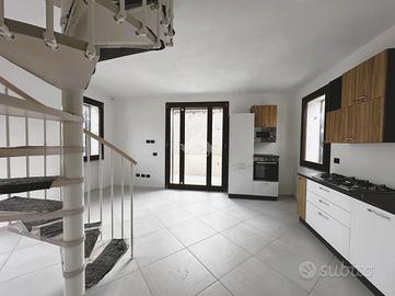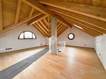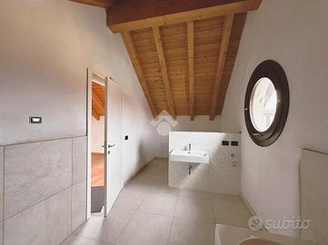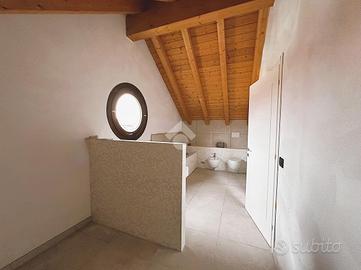 Dal soggiorno, una comoda scala a chiocciola permette l'accesso al sottotetto abitabile open space, dotato di finestre e lucernari, secondo bagno con finestra e vasca idromassaggio, oltre agli attacchi per lavatrice.