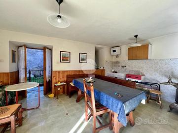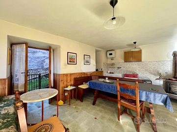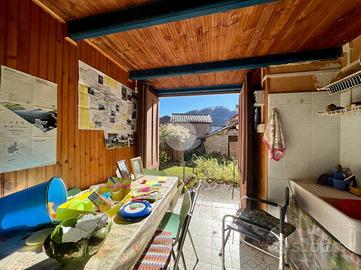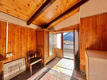 Nella tranquilla e soleggiata frazione Tornetti di Viù alloggio quadrilocale disposto su più piani con balcone, cantina e cortiletto di circa 15 metri quadri.