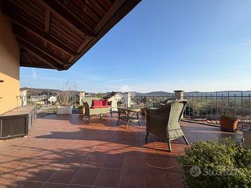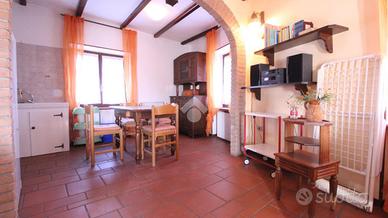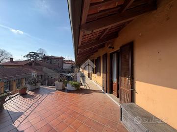 In zona centrale, appartamento situato al piano secondo di una palazzina con altre unità immobiliari ristrutturato tra fine degli anni 80 e l'inzio degli anni 90. L'accesso si ha mediante il balcone che si estende lungo la facciata della casa e si trasforma in un prezioso terrazzo dal quale si ha uno scorcio di vista lago. La zona giorno è composta da ampio soggiorno impreziosito da un elegante camino collegato con l'angolo cottura. Questo ambiente è dotato di pavimento in cotto. Invece, la zona notte conta di due camere da letto spaziose e due bagni, uno con doccia e uno con vasca entrambi con finestra. Gli infissi sono in legno e dotati di doppi vetri. Il riscaldamento è autonomo a metano ed è presente la canna fumaria.