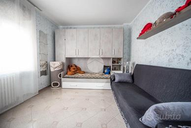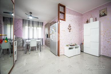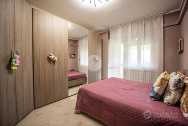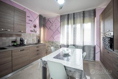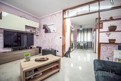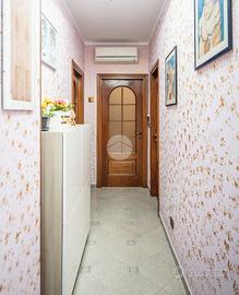 In zona residenziale, a pochi passi dal centro e comodo a tutti i principali servizi, l'appartamento si trova al primo piano di una palazzina in paramano e dotata di ascensore. Dall'ingresso si accede alla cucina abitabile, spaziosa e dotata sia di finestra sia di porta finestra con sfogo sul balcone comodamente fruibile e munito di tenda da sole e di tenda veranda. Il soggiorno è ampio e luminoso. La zona notte è composta da due camere da letto. Il bagno è con doccia ed è finestrato. L'appartamento è stato ristrutturato, gli infissi sono in PVC con doppio vetro e con zanzariere e l'immobile gode di una doppia esposizione che conferisce luminosità agli ambienti durante tutto l'arco della giornata. Sono presenti i condizionatori e la predisposizione per l'antifurto. Completano la proprietà la cantina e il posto auto assegnato. L'immobile viene venduto con la cucina completa di elettrodomestici, camera da letto matrimoniale completa e parete soggiorno.