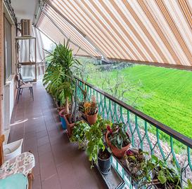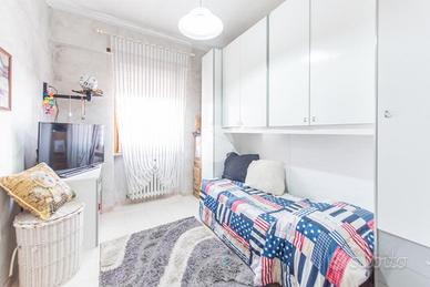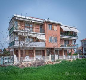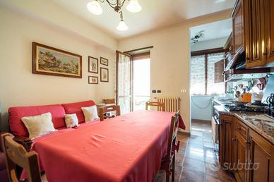 In zona tranquilla e residenziale, l'appartamento è situato al secondo piano di una palazzina di sole sei unità abitative. Dalla porta blindata si ha accesso alla zona giorno composta dalla spaziosa e comodamente fruibile cucina abitabile e dall'ampio salone living; da entrambi gli ambienti si ha sfogo tramite porte finestre, al balcone in parte verandato e munito anche di tende da sole. La zona notte si compone di una camera da letto matrimoniale e di una seconda camera. Il bagno è con vasca. Gli infissi sono in legno con doppio vetro e in tutti gli ambienti, esclusa la camera singola, sono presenti le tapparelle motorizzate. Sono presenti i condizionatori che fungono anche da pompa di calore. Il riscaldamento è autonomo e la tripla esposizione conferisce luminosità agli ambienti durante tutto l'arco della giornata. Completano la proprietà due cantine e il box auto.