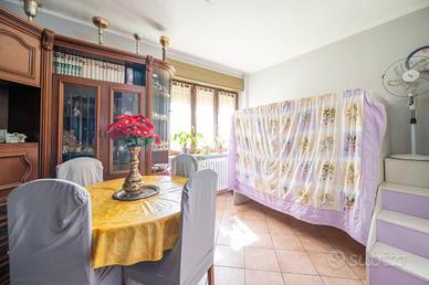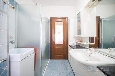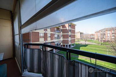 In zona residenziale, a pochi passi dal centro e comodo a tutti i principali servizi, l'appartamento si trova al secondo piano di una palazzina in paramano e dotata di ascensore. Dall'ingresso si accede alla cucina abitabile, spaziosa e dotata sia di finestra sia di porta finestra con sfogo sul balcone comodamente fruibile, munito di tenda da sole e di tenda veranda e di un ripostiglio. Il soggiorno è ampio e luminoso ed è anch'esso finestrato. La zona notte è composta da due camere da letto, entrambe matrimoniali. Il bagno è dotato di box doccia fuori misura ed è finestrato. E' presente un comodo ripostiglio. L'appartamento è ristrutturato, gli infissi sono in legno con doppio vetro. L'immobile gode di una doppia esposizione che conferisce luminosità agli ambienti durante tutto l'arco della giornata. Completano la proprietà la cantina e il posto auto assegnato.