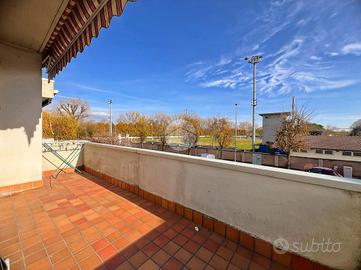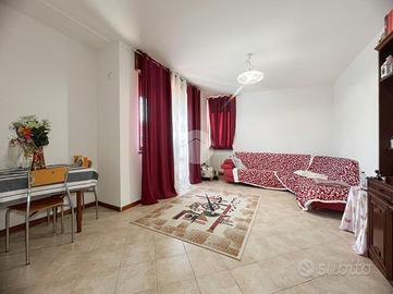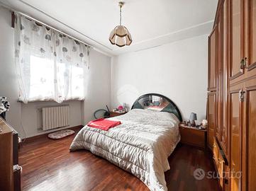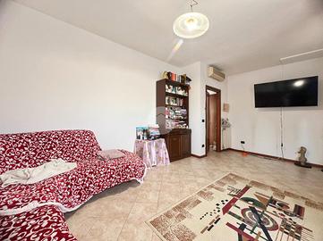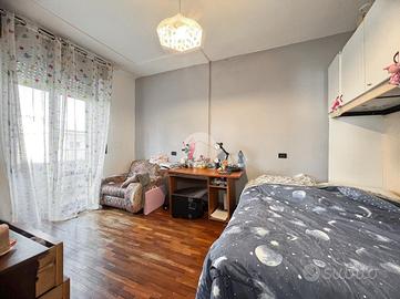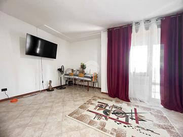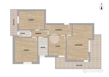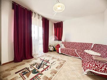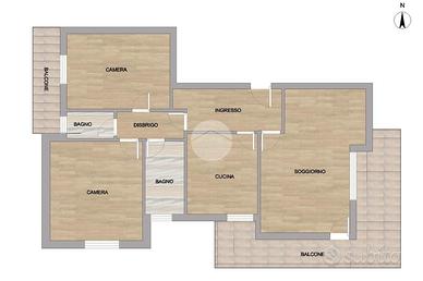 L'immobile si presenta con soggiorno e cucina separata, entrambi dotati di accesso diretto al balcone, offrendo ambienti luminosi e ben collegati agli spazi esterni. Attraverso il disimpegno si accede alla zona notte, composta da due camere da letto: una matrimoniale e una singola, quest'ultima con uscita su un secondo balcone. La soluzione dispone inoltre di due bagni, di cui uno attualmente adibito a lavanderia.