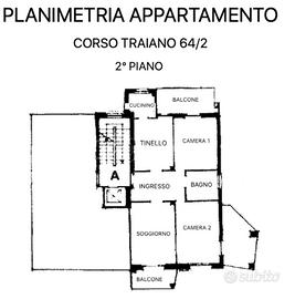 La TEMPOCASA di Mirafiori Sud Traiano, propone in ESCLUSIVA in Corso Traiano, un AMPIO quadrilocale al secondo piano. L'appartamento è internamente così composto: ingresso, tinello con cucinino, soggiorno, due camere, bagno finestrato, due balconi e un terrazzino. L'appartamento avendo una planimetria perfettamente squadrata, permette una diversa ridistribuzione degli spazi interni, in base alle proprie esigenze. Completano la proprietà, al piano interrato, due locali ad uso cantina. L'immobile si presenta in buone condizioni interne, è lLUMINOSO e gode di una TRIPLA esposizione. La porta d'ingresso è blindata. Posizionato in zona residenziale, tranquilla e silenziosa, a due passi dagli innumerevoli servizi presenti su Corso Traiano, come: supermercati, farmacie, posta, banche e vari negozi al dettaglio. QUATTRO BUONI MOTIVI PER ACQUISTARE QUESTO IMMOBILE: - DUE BALCONI PIU' TERRAZZINO - LUMINOSO - ZONA RESIDENZIALE SERVITA - TRIPLA ESPOSIZIONE Visionate tutte le proposte immobiliari sul nostro sito www.tempocasatorinomirafiorisudtraiano.it Venite a trovarci presso il nostro Punto Vendita sito in Torino, Via Pio VII 134/B, nelle immediate vicinanze di Corso Traiano. DOVETE VENDERE CASA? Offriamo VALUTAZIONI GRATUITE! I nostri recapiti sono: Tel. Cell. - WhatsApp - EMAIL torinomirafiorisudtraiano@tempocasa.it Cliccate MI PIACE sulla nostra pagina ufficiale: Torino Mirafiori Sud Traiano, https://tempocasa.it/en/our-offices/torino/torino/877-torino-mirafiorisud-traiano/annunci INSTAGRAM: Tempocasamirafiori FACEBOOK: Tempocasa Torino - Mirafiori Sud Traiano CANALE YOUTUBE: Tempocasa Torinomirafiorisudtraiano OGNI AFFILIATO E' UN'IMPRESA AUTONOMA. LE INFORMAZIONI SOPRACITATE NON COSTITUISCONO ELEMENTO CONTRATTUALE. - Classe: F - IPE: 186.62 kWh/mq anno