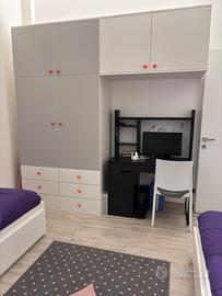 Al piano superiore ci sono 2 camere da letto, una di generose dimensioni ed una cameretta leggermente più piccola , bagno con doccia .