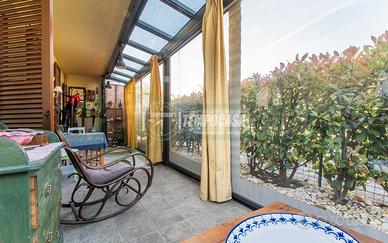 Uno dei principali punti di forza di questa abitazione è l'ampio giardino privato di circa 150 mq, perfetto per chi desidera godere di spazi esterni riservati. Il giardino è impreziosito da una veranda coperta, ideale per momenti di relax o per pranzi all'aperto con famiglia e amici. Gli spazi esterni sono facilmente accessibili dalla zona giorno e da una delle camere, garantendo così una piacevole continuità tra interno ed esterno.