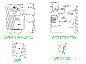 Ingresso su disimpegno da porta blindata, sala con cucina a vista e uscita su balcone e terrazzo collegato alla camera da letto, sempre al piano, troviamo il primo servizio finestrato con box doccia. Tramite scala interna, si accede al piano sottotetto, con zona open space, un locale uso lavanderia e il secondo servizio dotato di vasca e box doccia.